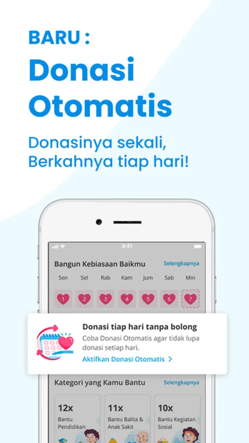 Mau donasi setiap hari tanpa perlu transfer berulang kali? Pakai fitur DONASI OTOMATIS! Bisa donasi setiap hari Rp1.000 dari saldo Kantong Donasimu. Sedekah subuh jadi bisa diingatkan, deh!