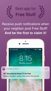 Freebie Alerts will send you an alert notification each time your neighbor give away something, click the notification and if it's something that you need, you just contact that person and pick the freebie up! Make it yours first!.