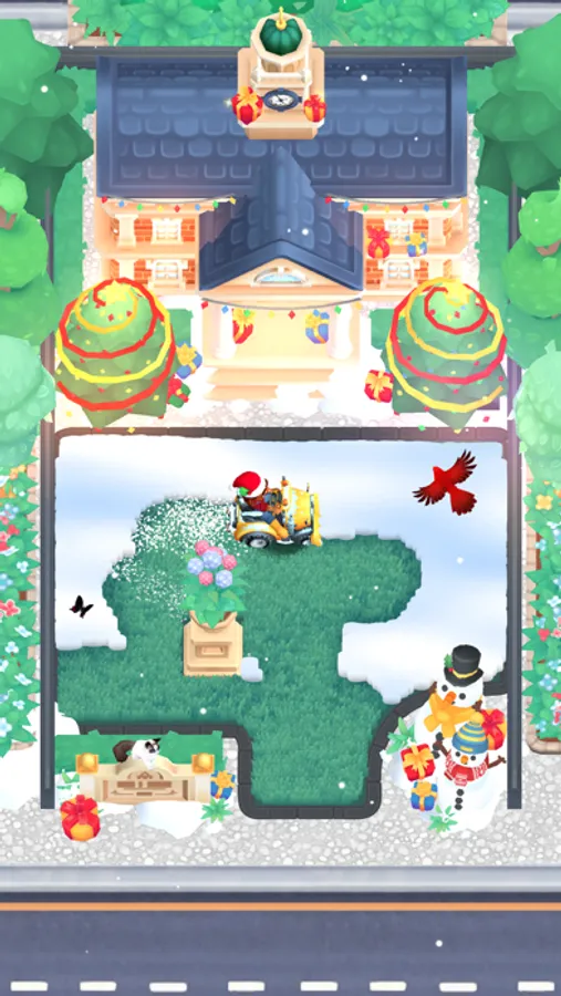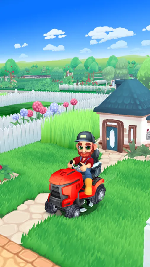- Guide your mower around lush gardens and charming houses; leave no blade of grass un-trimmed.