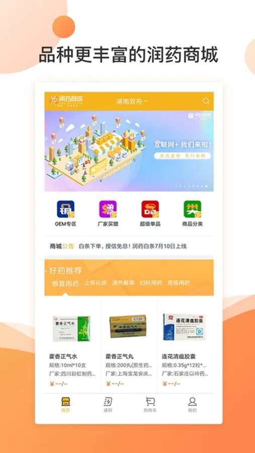 润药商城是华润医药商业集团旗下的大型医药综合服务平台,致力于为终端客户提供线上采购、物流配送、在线支付等服务,同时为生产厂家和合作伙伴提供品牌宣传、精准营销、数据分析的入口。