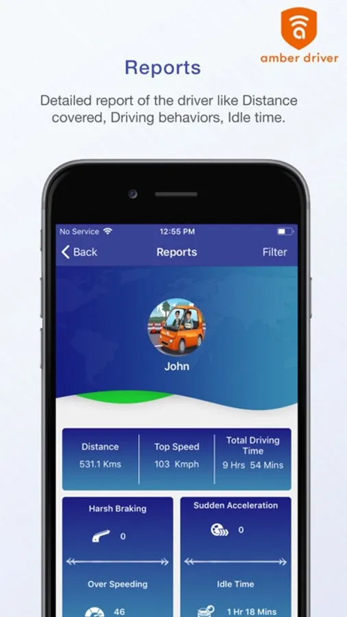 Access detailed driver reports highlighting indicators such as distance covered, driving behaviour and idle time.