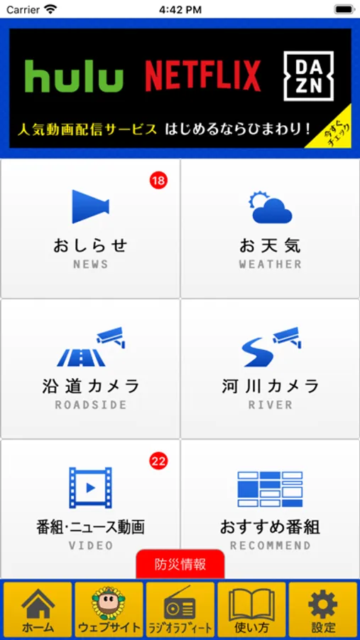 お住まいのエリアをあらかじめ登録しておけば、沿道カメラと河川カメラをご利用の際に、そのエリアが自動的に選ばれます。