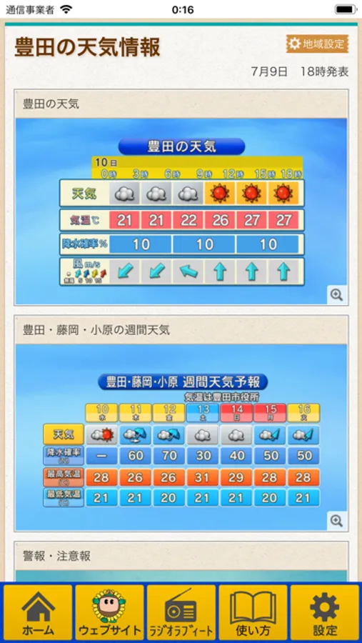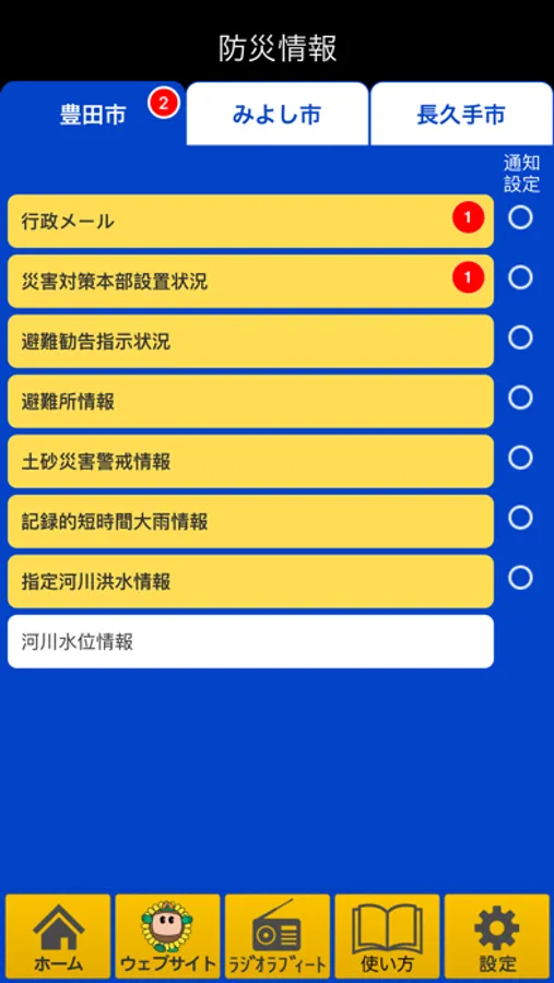"豊田市・みよし市・長久手市の沿道・河川状況やお天気、警報・注意報など、気になる情報をすぐに確認!