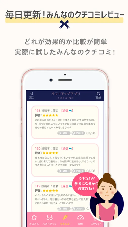 バストにまつわるオススメの情報も一緒にご提供。アプリで解説しているストレッチやマッサージだけでも十分ですが、サポートするナイトブラやクリームなどを使えば効果的なバストケアが可能です。さあ、理想のバストを手に入れましょう!