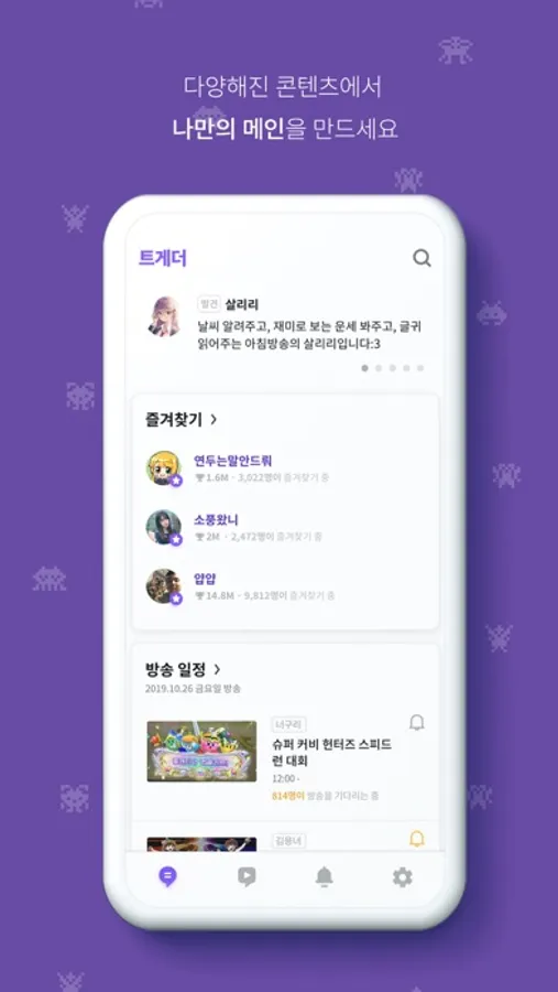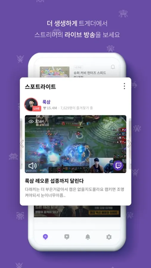 트위치 TV 스트리머들과 시청자들이 만들어가는 다양한 컨텐츠를 트게더 앱에서 확인해 보세요!