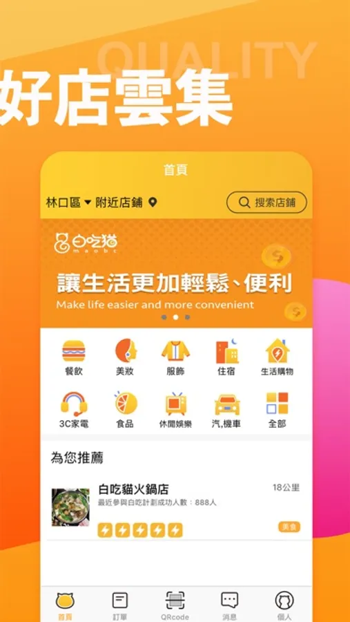 白吃貓是新世代的手機行動支付APP,係一款基於共享經濟及O2O(Online to Offline)新零售概念,所設計結合網路與實體經濟銷售模式之手機行動支付促銷利器。