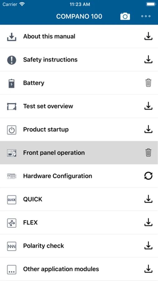 The App "COMPANO Knowledge Access Point" allows having the COMPANO 100 test set manuals available at any time.