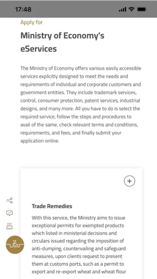 The users can use the app to apply for eservices, follow up on the submitted applications, perform payments and download certificates and respond to modification letters incase if the application was returned by employees .
