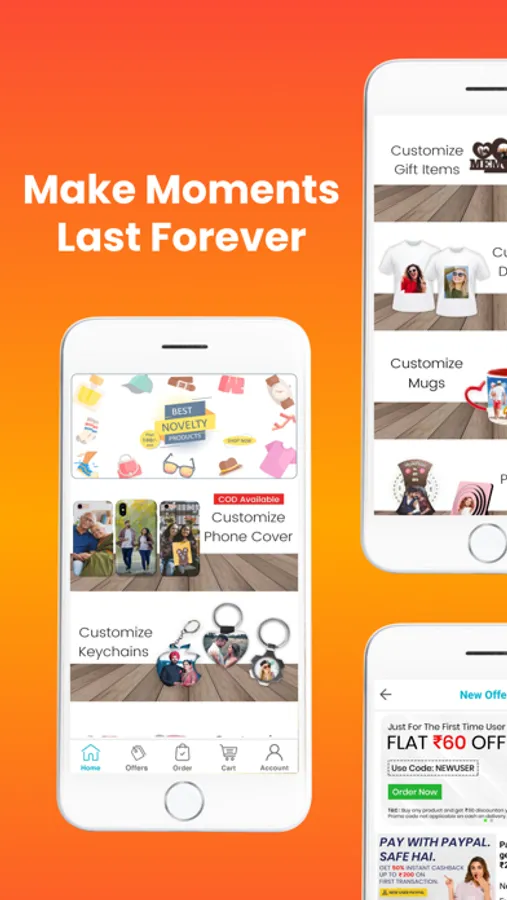 Get your customized accessories using the app and enjoy the ease of personalized gifting. Just upload any picture you want printed on your product directly from the app, choose from a variety of mobile covers available, add stickers with suitable photos, adjust the image freely with the advanced photo editing tool and complete the payment using safe and secure payment options and easy checkouts.