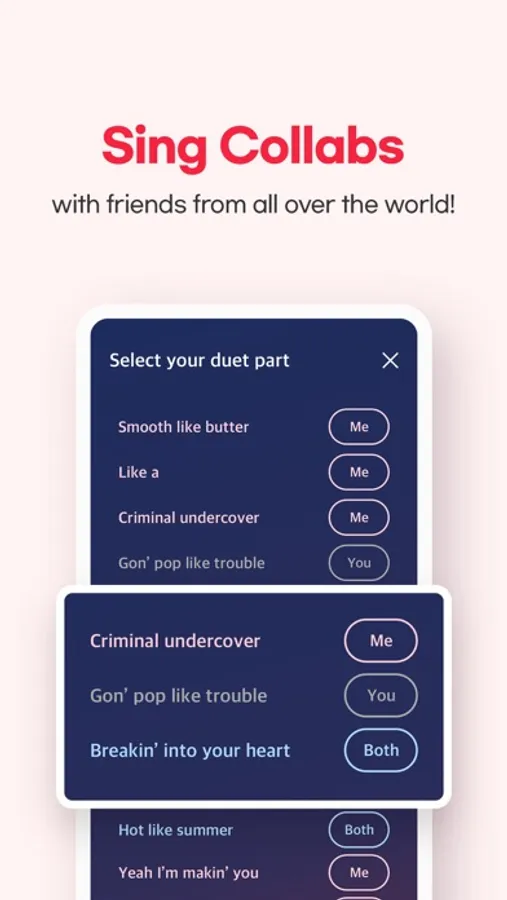 - Achieved ‘Studio Quality Sound’. Try ‘Duet Song’ along with your friends all over the world as well as ‘Solo Song’.