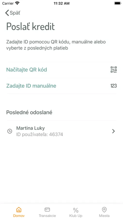 - poslať kredit na inú stravovaciu kartu UpDéjeuner