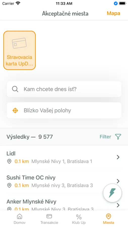 - pozrieť si aktuálne zľavy v sieti obchodných partnerov Up - vyhľadávať akceptačné miesta vrátane lokalizácie