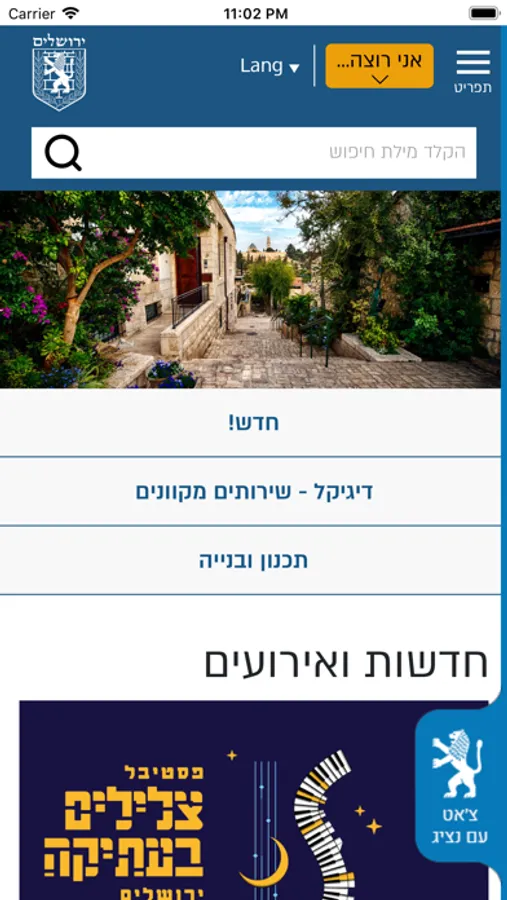 באפליקציה תוכלו למצוא מידע על כל מה שקורה בעיר. תוכלו לבצע פעולות כגון תשלומים שונים, מילוי טפסים או דיווח למוקד 106. האפליקציה מכילה מידע לתושבים לעסקים ולמבקרים וכן מידע כללי על העיר ירושלים. כמו כן תוכלו ליצור איתנו קשר ולפתוח פניות למוקד העירוני