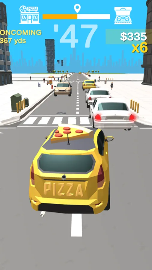 Deliver Pizza before time runs out. Swipe left and right to change lanes, braking is automatic!