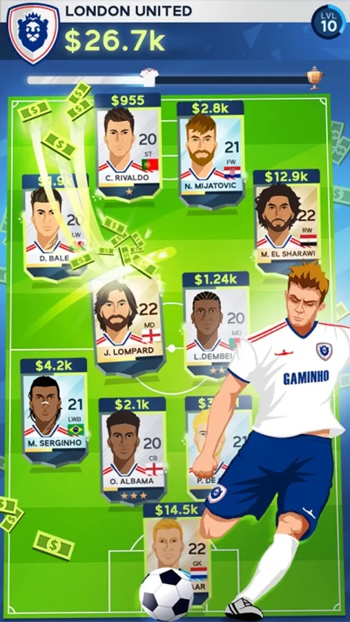 ▪ TRAIN your players and upgrade their soccer skills (shooting, passing, dribbling, defense…) to multiply their value and the money they generate