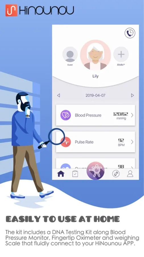 The App is specially designed for seniors, with simple interface including both image and sound instructions, which enable them to do their daily check-up at home.