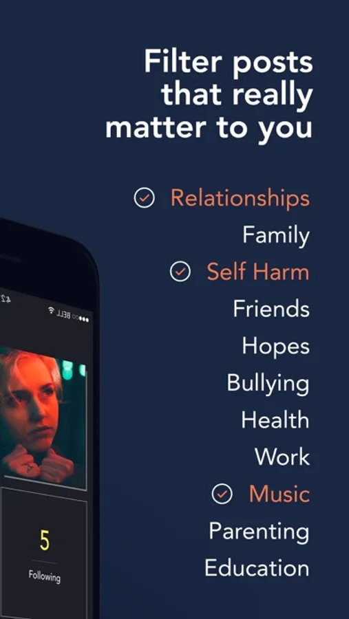 • Safely share struggles with anxiety, depression, stress, bipolar, self-harm, anorexia or suicidal feelings.