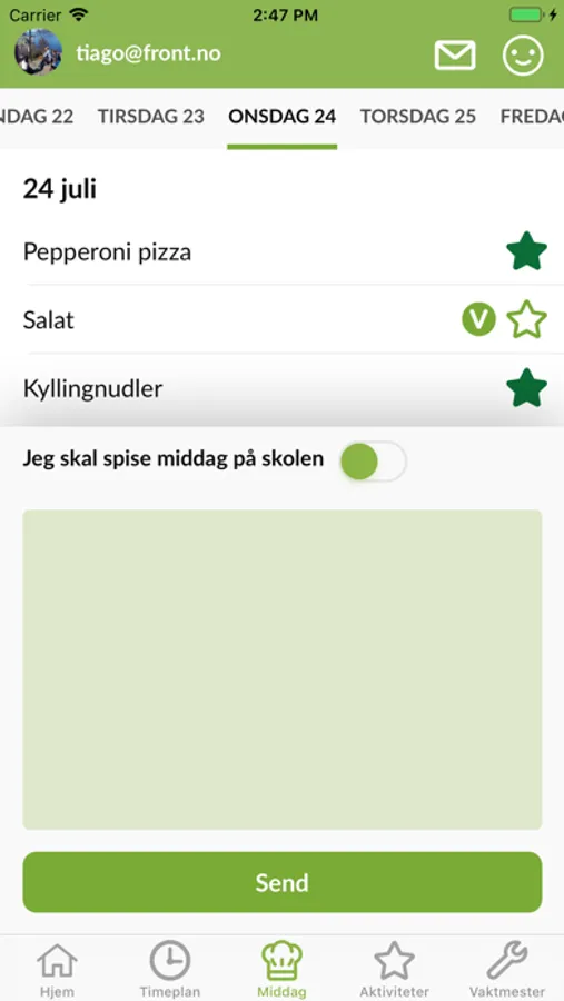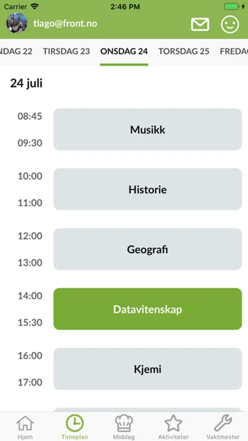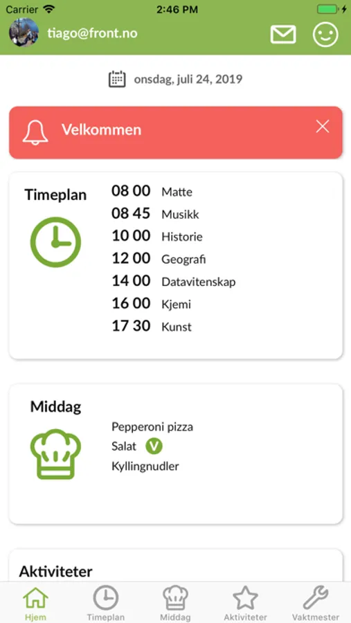 Her får du et moderne verktøy for kommunikasjon mellom skole og elev. Eleven har full oversikt over egen skolehverdag, og skolen får en plattform for kommunikasjon mot elevene. I appen ser du din egen timeplan, du kan melde deg på skolens aktiviteter, se hva som er til middag og få meldinger fra lærer/admin.