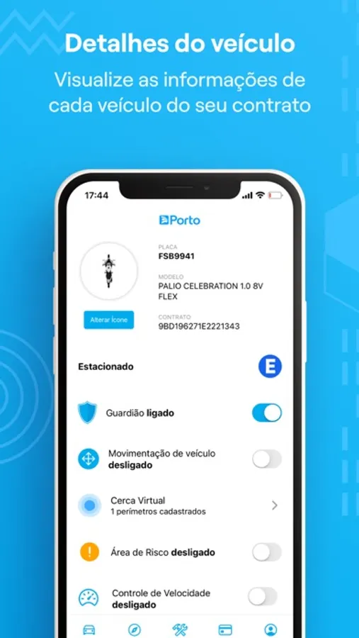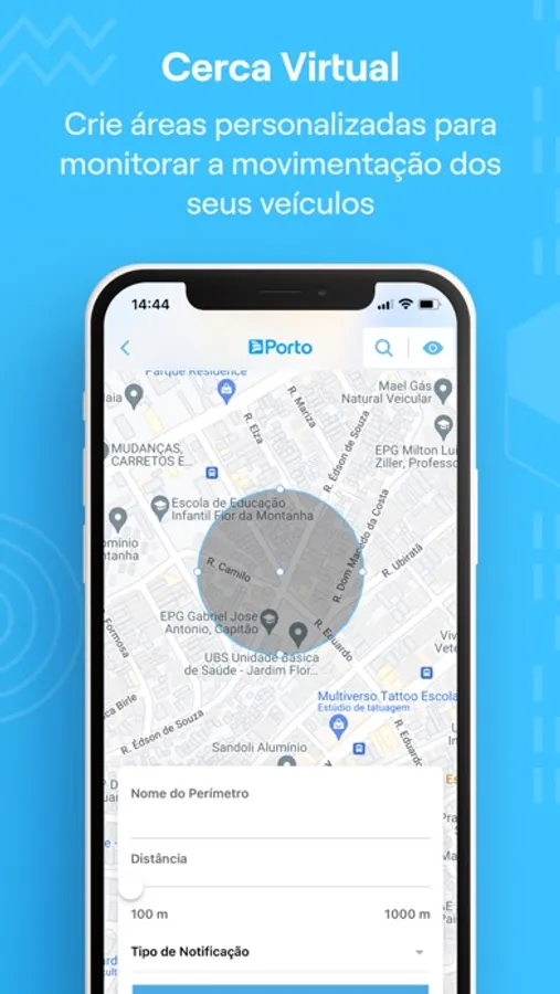 > Cerca virtual: Crie perímetros virtuais e seja avisado toda vez que seu veículo entrar ou sair deles;