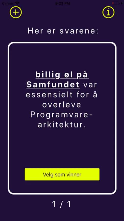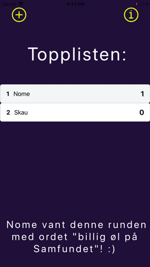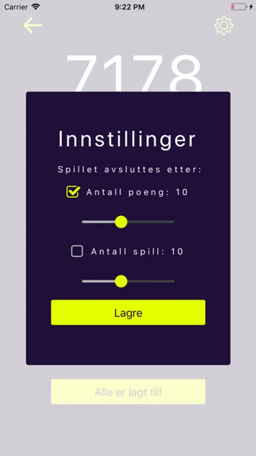 - Velg selv hvor mange runder som skal spilles / hvor mange poeng en må ha før det kåres en vinner. Dette gjøres i innstillinger i "Start et spill"