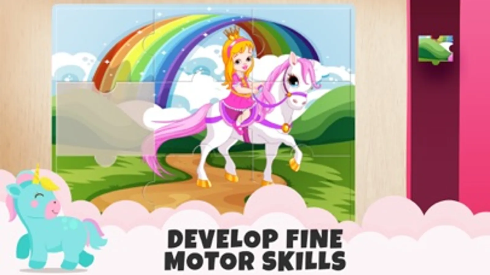 Puzzle for Kids that everyone loves – Drag the puzzle pieces across the screen and complete the beautiful unicorn cartoon illustrations.