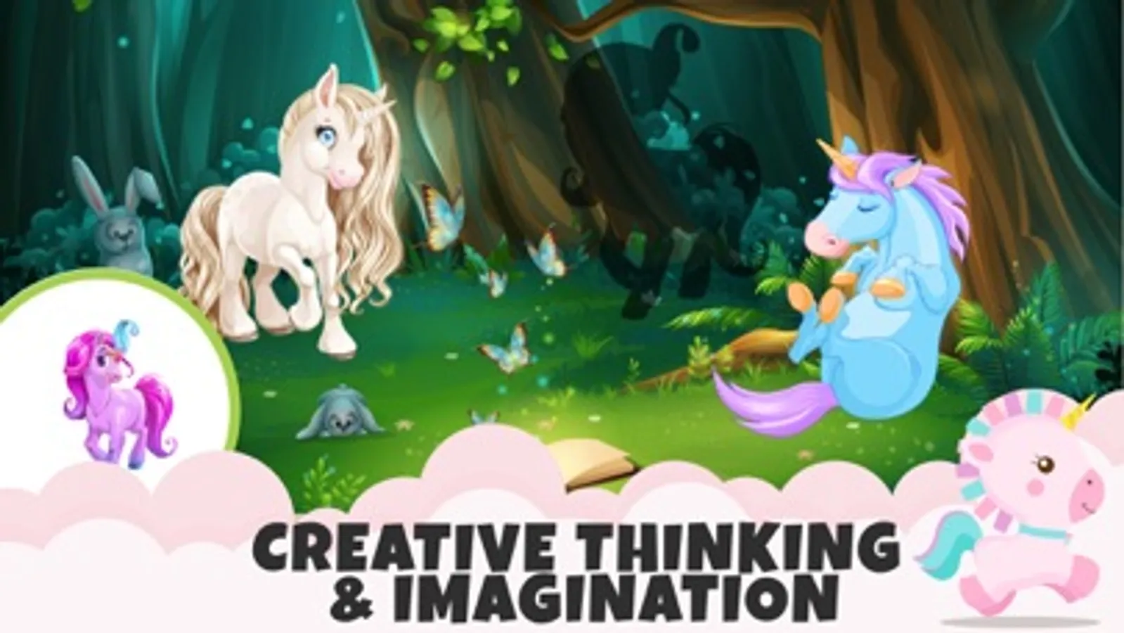 A unicorn fairytale filled with magical creatures, cute ponies and sweet little horses that will mesmerize children all around the world. Let your little fairy princess discover her favorite pony heaven and spend quality time playing this phenomenal educational puzzle that contains four different logic games. The girls will be so happy in this fantasy wonderland playing with over 30 cute baby unicorns and we’re sure that moms will want to join the fun as well. Rainbows, pink clouds and sparkles, what more can a little girl ask for - we have it all in our little unicorn kingdom.