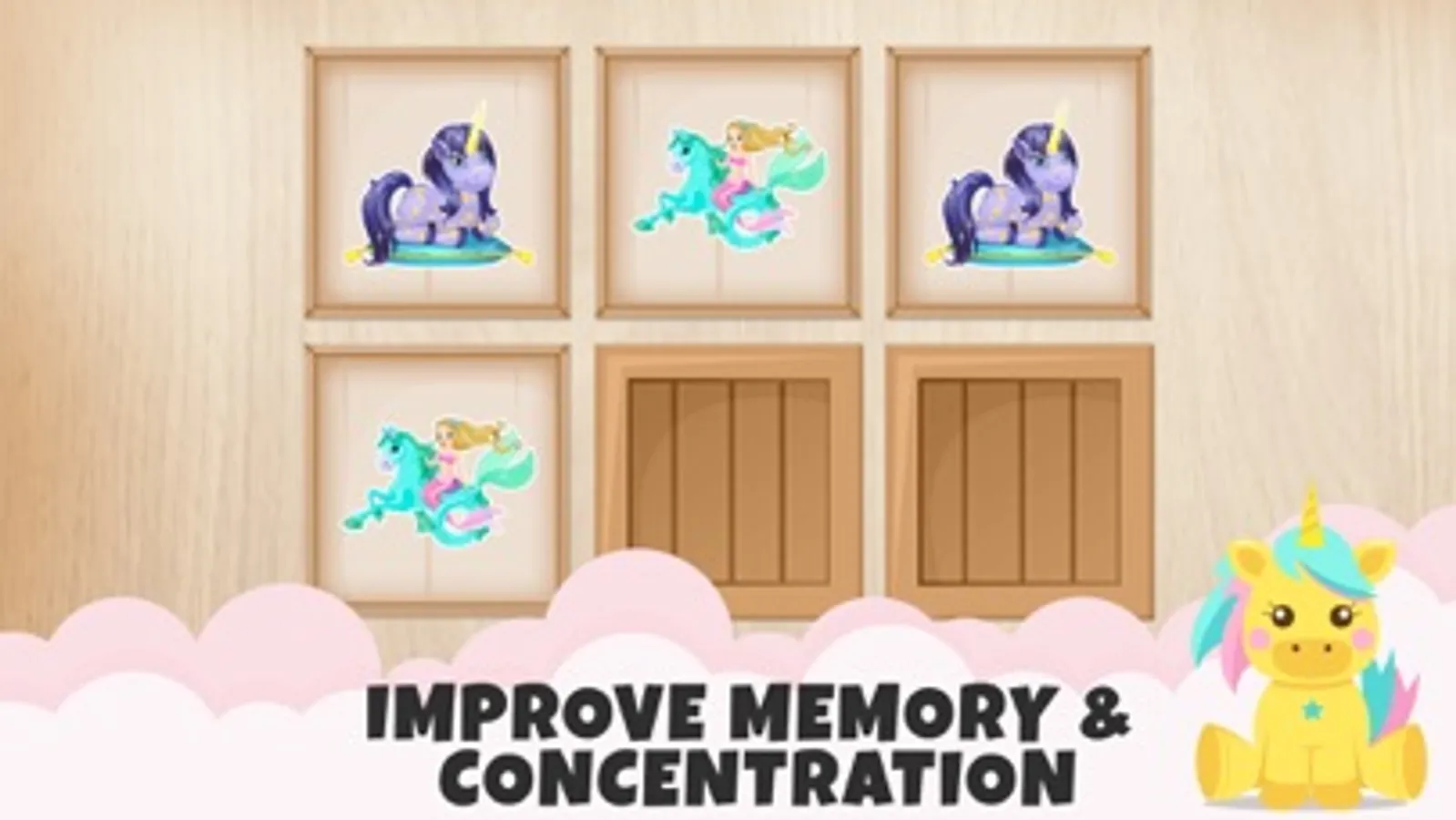 Kids will be developing their logical thinking skills, motor skills, cognitive skills, problem solving, concentration, shape-recognition and memory while playing in a friendly fantasy environment with lots of magical ponies and dreamy unicorns.