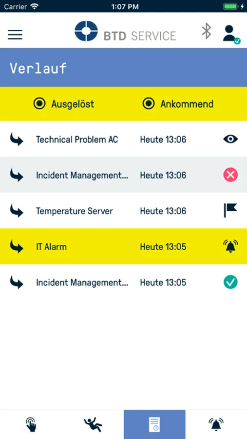 Mit der BTD Alarm App können Sie zuverlässig Alarme auslösen und wichtige Meldungen empfangen.