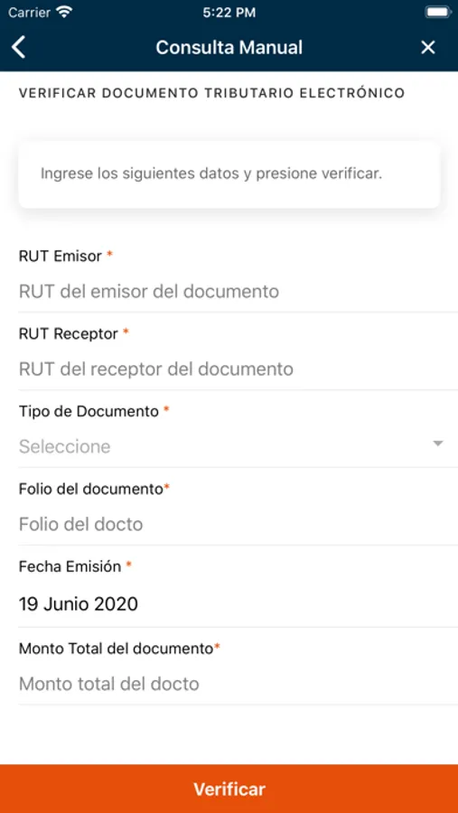 También te permitirá verificar la validez de los siguientes Documentos Tributarios Electrónicos: Factura Electrónica, Factura Exenta Electrónica, Liquidación Factura Electrónica, Factura de Compra Electrónica, Guía de Despacho Electrónica, Nota de Débito Electrónica, Nota de Crédito Electrónica, Factura de Exportación electrónica, Nota de Débito de Exportación Electrónica y Nota de Crédito de Exportación Electrónica.
