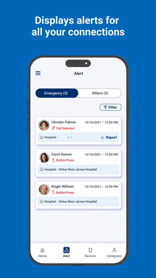 Check on the device history and status of all the loved ones in your care and review information for each user.