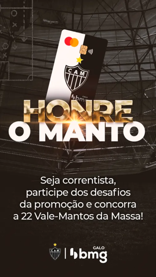Baixe o app e abra a sua conta, é grátis e você deixa o Galo ainda mais forte a cada operação financeira realizada!