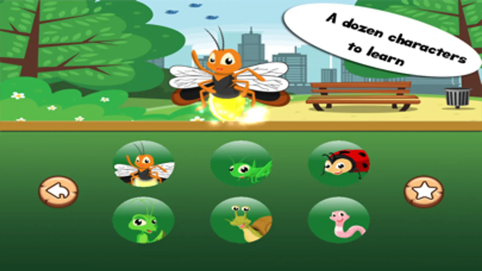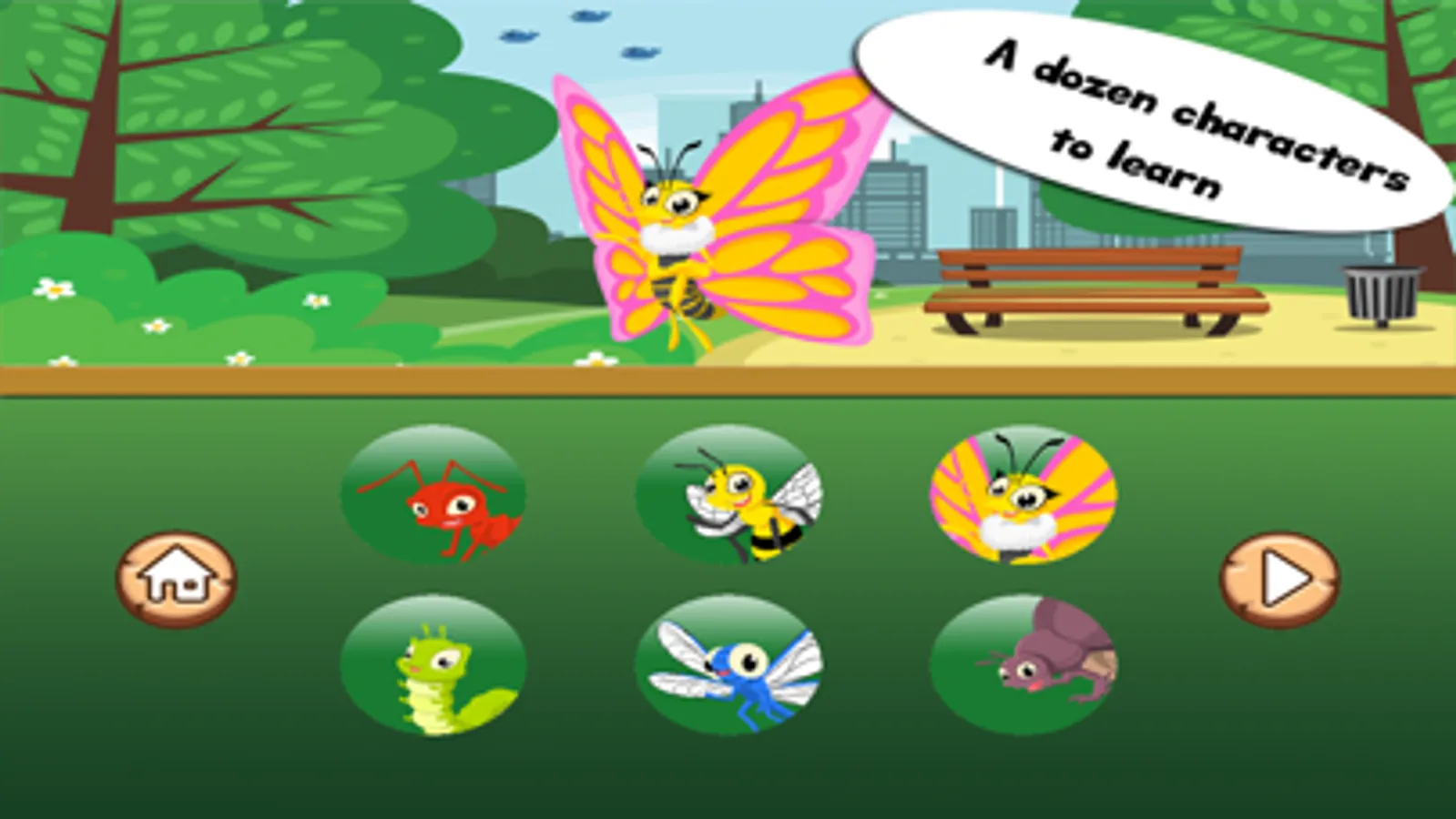 Have fun playing and learning with Spell & Play: Insect Friends. Learn how to say the names of a dozen fun insects. Each creature comes with a spelling game that will help your child build their vocabulary. Also, a fun minigame awaits you and your child as well.