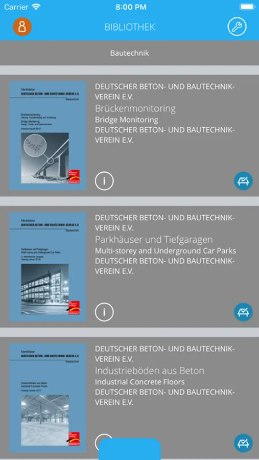 The app "DBV-Schriften" contains all currently valid guides of good practice of the Deutscher Beton- und Bautechnik-Verein DBV.