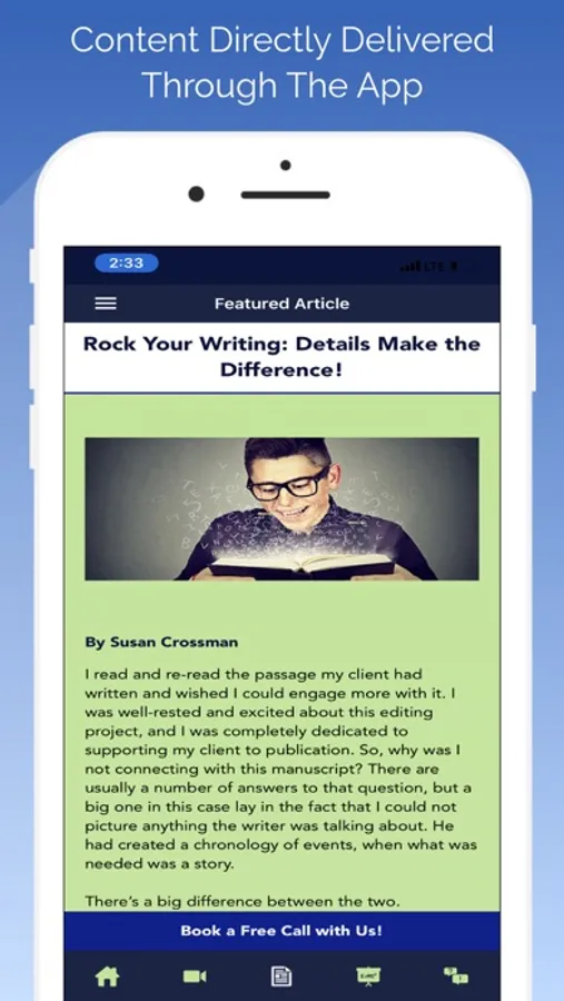 We add content to this app regularly with new videos, articles, journal lessons, and other free resources that invite you to think deeper and feel more profoundly while serving your audience in ways only you can deliver. As experts in written communication, content marketing, and book editing, we share generously of the insights and practical tips we've amassed over decades of experience, reflection, travel and mentorship. And it is our intention to become your go-to resource for communication that assists in the magical effort to expand human consciousness.