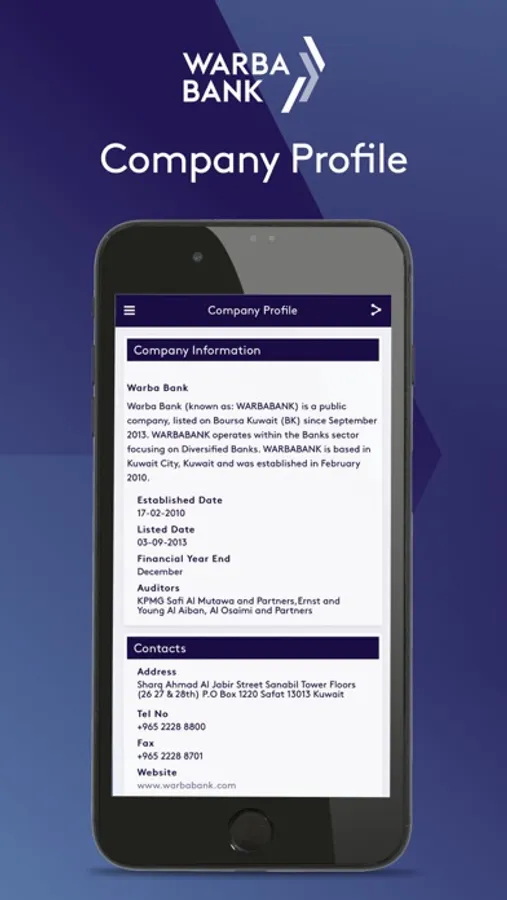 Warba Bank Investor relations app will provide you with instance access to important financial and business information. The App provides all documents of interest to shareholders, investors and analysts such as: