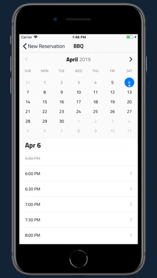 Quick and easily reserve shared areas con the organization. Check all available schedules for each day in nice calendar.