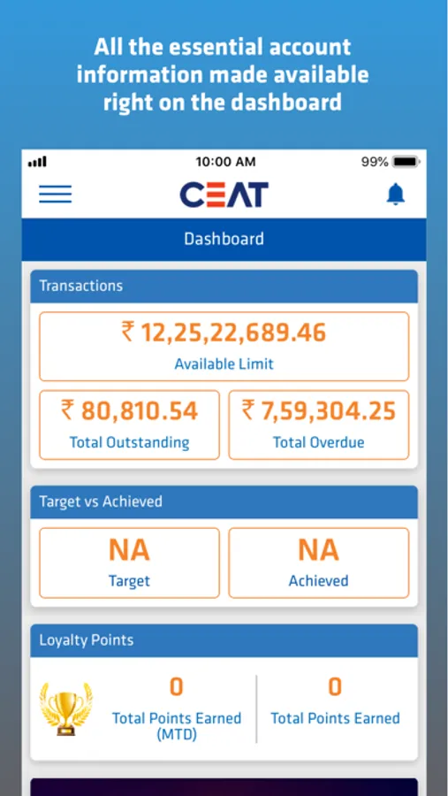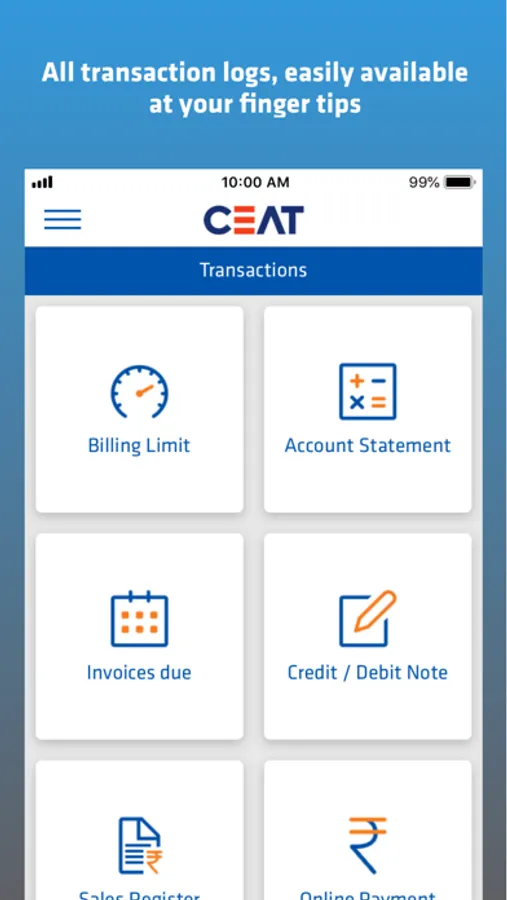 CEAT ASSIST is a step towards building an extended collaborative enterprise where CEAT and its channel partners can interact on a modern digital platform. CEAT ASSIST is the futuristic way of doing your day to day work like registering warranties, creating claims, placing orders or accessing financial data on a mobile or desktop. It saves your time spent on non-selling activities so that you have more time for your business.