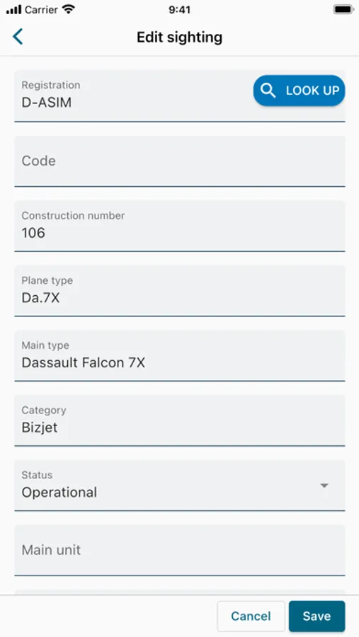- Link to the Spottingmode plane lists to auto complete plane data (online only)