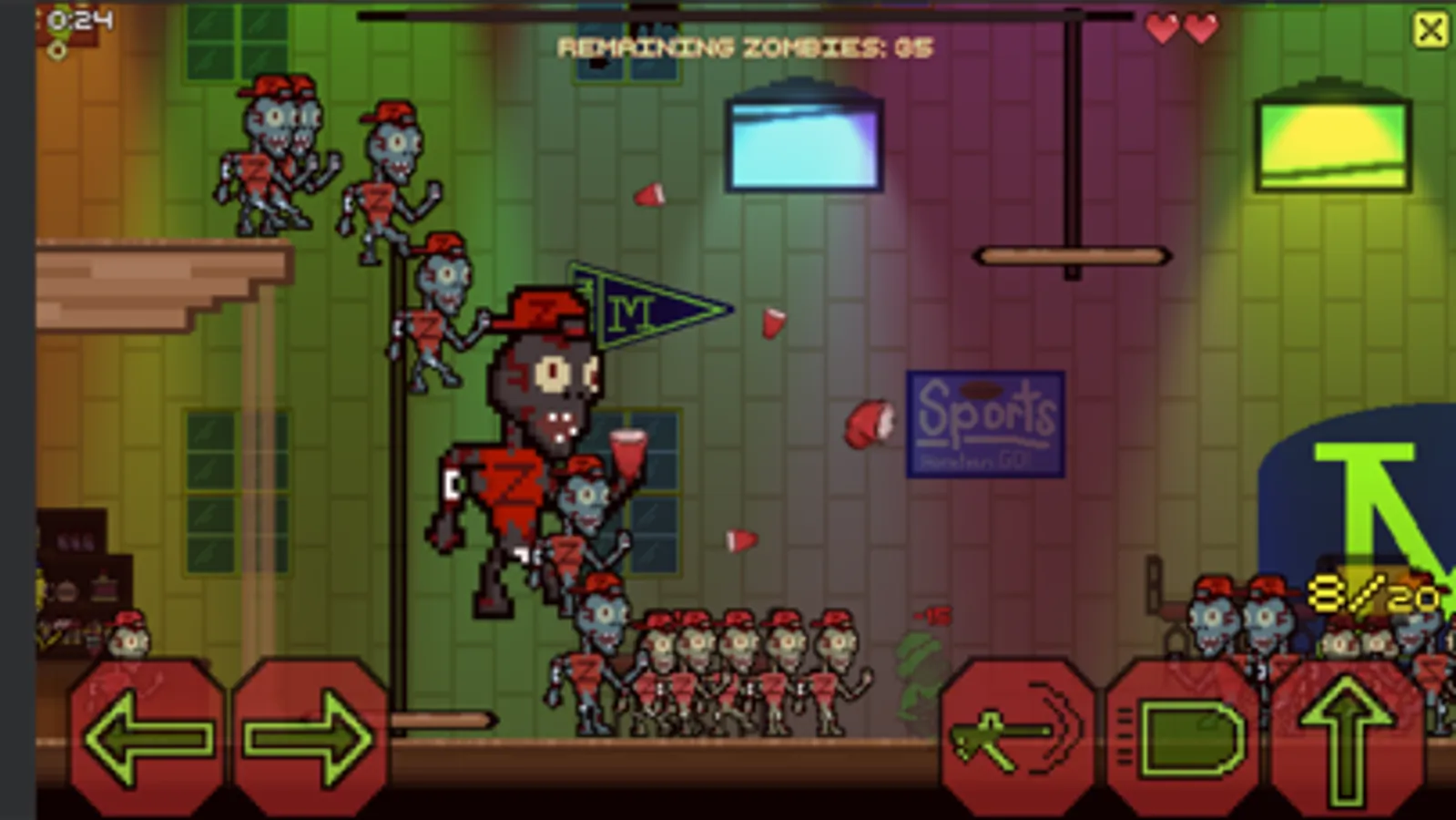 Scarekeepers is a zombie survival game set in a sports bar. Play through the main game surviving 10 waves of zombies to survive the night or play endless mode to try and rack up as many points as possible. Grab health packs, ammo boxes, and long islands to stay alive through a night you won't forget!