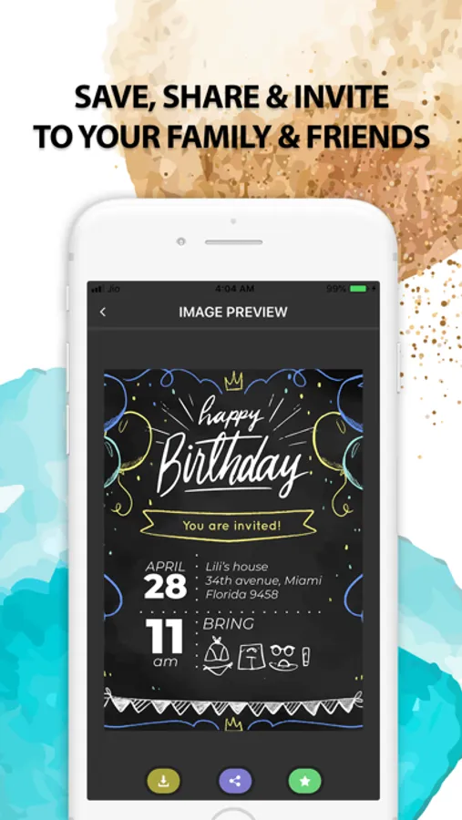 Create custom invitation cards by simply choosing a free invitation template and edit it. Make special Digital Invitation Card to invite your friends and family for your special occasion. Design invitation card for party, birthday, and wedding ceremony, engagement/ring ceremony within seconds using beautiful and professional templates. Create Invitation Card (RSVP) for your ease of use. Party invitation template to create invitation cards.