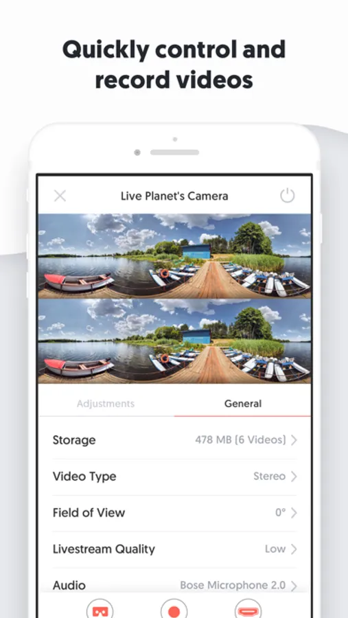 The Live Planet™ VR Creator App enables you to record perfectly-stitched, beautiful stereoscopic VR video from your Live Planet camera to VR headsets and social channels within minutes! This powerful on-the-go app makes it easy to control your Live Planet VR Camera, including: