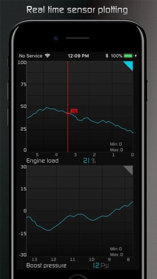 • Real-time user-defined sensor plotting. Graph up to 4 sensors at the same time on interactive graph that can be scrolled, paused and polled.