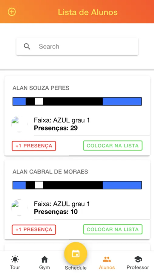 Com o app do professor MyBelt você poderá cadastrar as presenças dos alunos enquanto dá a aula de forma rápida e fácil.