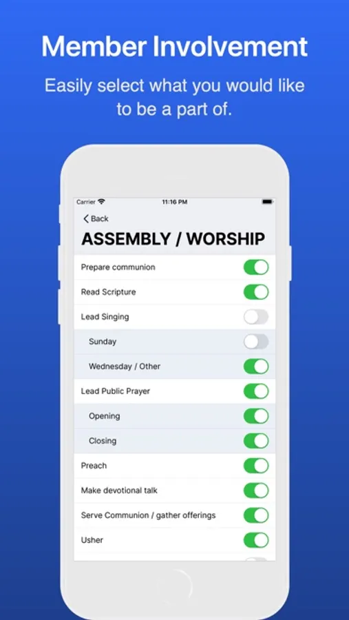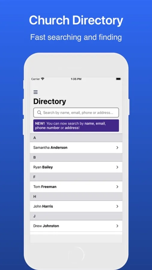 Members can search their church directory, update their information, download files, fill out their member involvement form and much more.