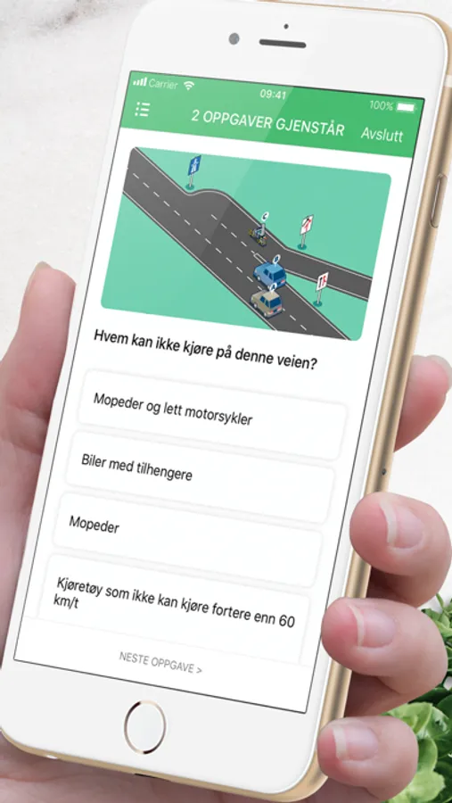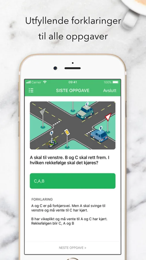 Oppgavene i Teoriappen tester og lærer deg om alt du trenger å kunne under teoriprøven.