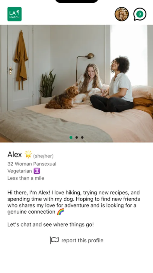 LA Match is a space for everyone to help find your love(s), bff(s), or work partner(s)… With a simple interface, ONLY good vibes, and zero distraction. Try LA Match for free as much as you want, and you decide!