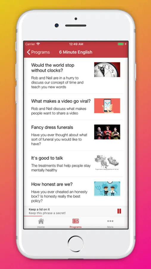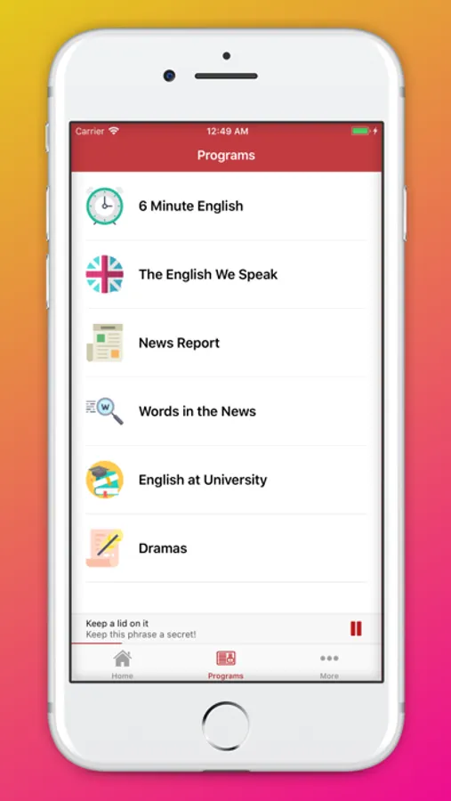 By listening, reading and practicing each day in this app, you can improve your english skills dramatically.