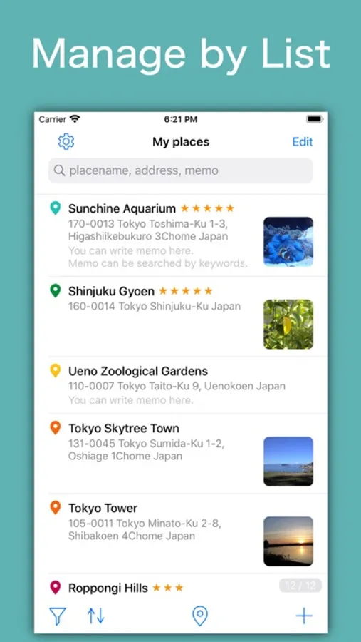 You will never forget the shops you care about, places you want to visit someday, places to remember, customer's location, and so on.