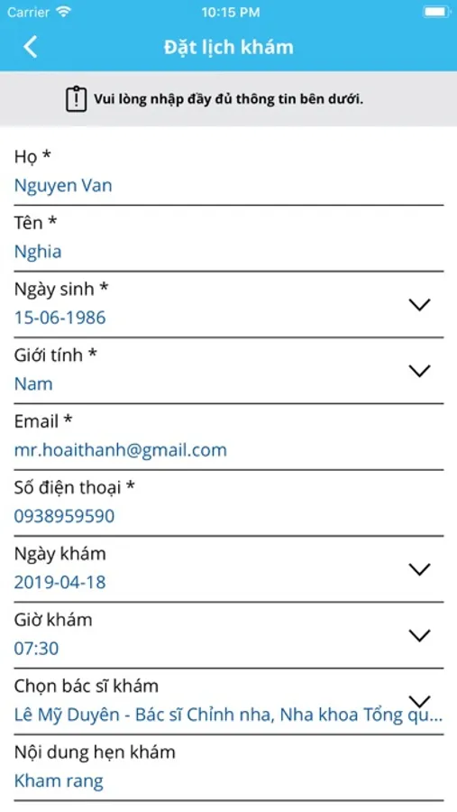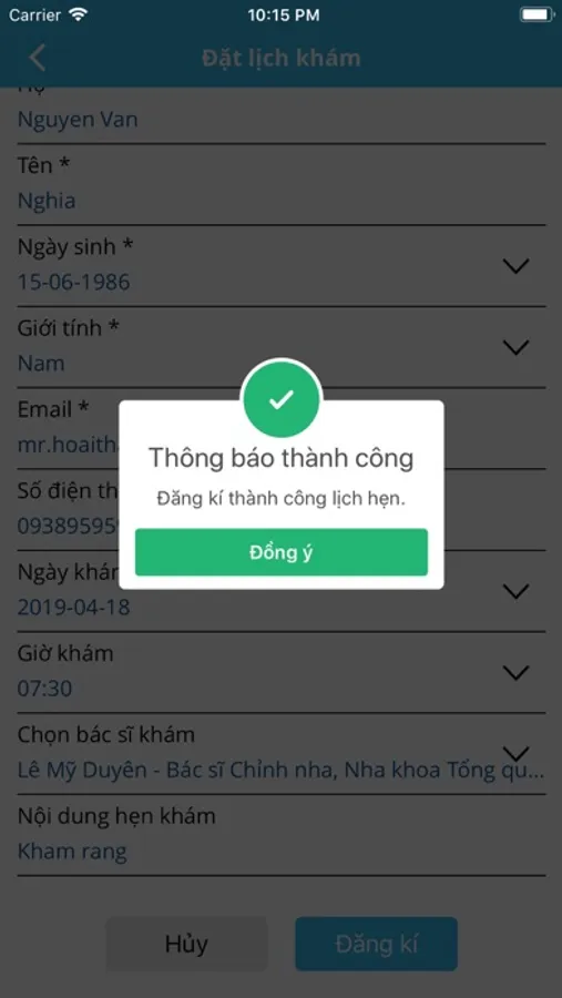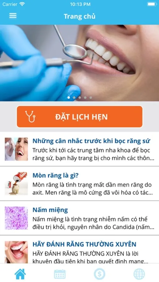 Ứng dụng cho pháp bệnh nhân đặt lịch hẹn khám với bác sĩ và theo dõi lịch trình khám, nhận xét cũng như kết quả khám gồm kết luận cùng những hình ảnh về quá trình điều trị của bệnh nhân.