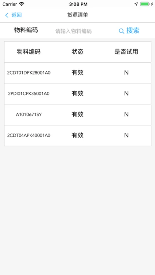 货源清单———供应商能够在APP系统的货源清单查询功能上查询到供应商自己所能供货的所有货源清单及对应货源清单的状态信息。